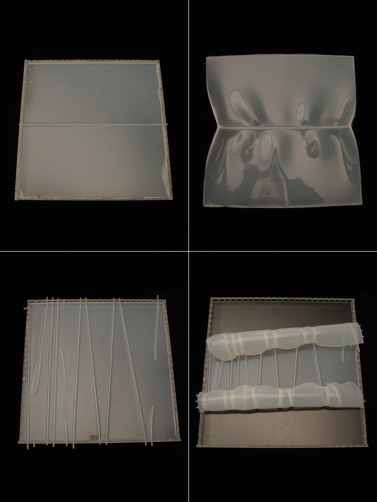 The goal of the research is to blur the boundaries between form generation and materialization by unfolding innate material capacities and behaviors, as well as to test a threshold between a composite material and an architectural assembly.